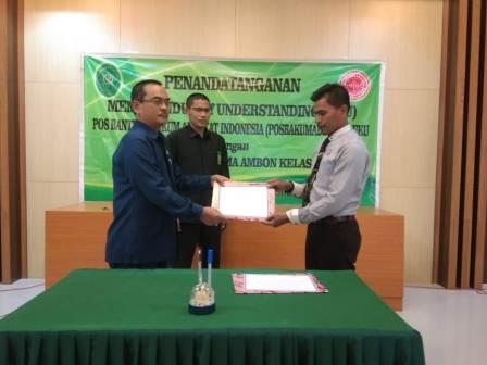 Ambon, pada tanggal 29/04/2019 bertempat di Ruang Sidang Utama Pengadilan Agama Ambon Kelas I.A telah dilaksanakan penandatangan Memorandum of Understanding (Mou) antara Pengadilan Agama Ambon dengan Pos Bantuan Hukum Advokat Indonesia, POSBAKUMADIN Maluku. Penandatanganan ini ditandatangani oleh ketua Pengadilan Agama Ambon, Drs. H.M.Syaukany., MHI dan perwakilan POSBAKUMADIN Maluku oleh Ruslan Abdul Ajid Tuhulele, SH.