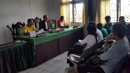 Senin (19/01/2015), Pengadilan Agama Ambon menerima kedatangan rombongan Mahasiswa dan Mahasiswi dari Fakultas Syariah dan Ekonomi IAIN Ambon yang bertempat diruang sidang Pengadilan Agama Ambon. kedatangan Mahasiswa dan Mahasiswi tersebut langsung disambut dengan hangat oleh Drs. Salahuddin, S.H., MH (Hakim PA. Ambon) yang didampingi Drs. Abd. Haji Latua S, dan Irpan Djokja. Maksud dari kedatangan Mahasiswi dan Mahasiswi ini yaitu untuk melaksanakan magang di Pengadilan Agama Ambon yang rencananya akan berlangsung sampai dengan tanggal 23 Januari 2015.