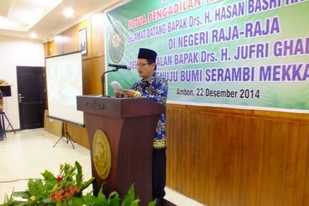 Selaku pemerintah daerah secara jujur beliau rasakan kehadiran Bapak Drs. H. Djufri Ghalib, S.H., MH di daerah ini sangat berkontribusi secara nyata dalam mendukung tugas dan wewenang untuk memutuskan perkara saudara-saudara yang bergama muslim berdasarkan hukum islam, untuk itu beliau mewakili Pemerintah Daerah Maluku mengucapkan terima kasih dan penghargaan yang setinggi-tinggi karena telah bekerjasama membangun Maluku dibidang penegakkan Hukum.