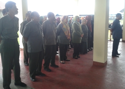 Jum’at (05/12/2014), meskipun diguyur hujan tak menyurutkan pegawai Pengadilan Agama Ambon untuk melaksanakan kegiatan apel pagi, namun apel pagi kali ini di pindahkan ke belakang Kantor Pengadilan Agama Ambon lebih tepatnya yaitu di tempat ruang tunggu sidang. Apel pagi yang dilaksanakan oleh Pengadilan Agama Ambon ini adalah salah satu kegiatan rutin yang telah dilaksanakan setiap harinya.