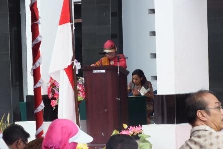 Selesai memotong tumpeng dan dibagikan kepada masing-masing perwakilan DYK Daerah maupun Cabang, acara di lanjutkan dengan sambutan yang disampaikan oleh Ny. Dra. Hj. Ishyaroh Soedarmadji selaku Ketua Dharmayukti Karini Propinsi Maluku beliau menyampaikan bahwa, dalam rangka memperingati Hari Ulang Tahun Dharmayukti Karini yang ke-XII (dua belas), kita para ibu-ibu Dharmayukti Karini Propinsi Maluku merasa sangat suka cita dan bahagia, dimana pada hari ini kita dapat merayakan hari jadi Dharmayukti Karini dengan rangkaian kegiatan lomba yang melibatkan seluruh pengurus dan anggota DYK Cabang Maluku, Cabang Kota Ambon, Cabang Masohi dan Cabang Tual.