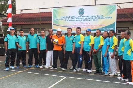Kamis (21/08/2014), laga perdana pembukaan kegiatan olahraga dalam rangka memperingati HUT Mahkamah Agung RI yang ke-69, yang mempertemukan Tim Volly dari Pengadilan Agama Ambon dan Tim Volly dari Pengadilan Tinggi Agama Ambon selaku tuan rumah menjadi pertandingan yang menyedot perhatian penonton yang terdiri dari Ketua dan Wakil Ketua PTA dan PA. Ambon, Hakim Tinggi, Hakim, Pejabat Struktural dan Fungsional serta para Pegawai PTA maupun PA. Ambon.