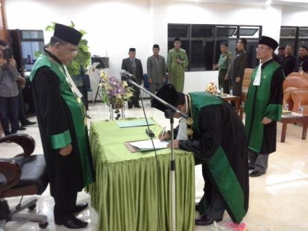 Acara pengambilan Sumpah Jabatan dan Pelantikan ditutup dengan pembacaan doa dan pemberian ucapan selamat yang diawali oleh Ketua Pengadilan Tinggi Agama Ambon dan diikuti Hakim Tinggi, para ketua empat lingkungan Peradilan dan para tamu undangan yang hadir. (IT)