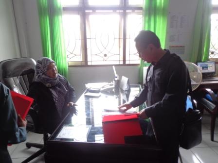 Setelah mengisi buku tamu Dirjen Badilag langsung ke ruang penerimaan perkara dan Meja II untuk memeriksa Register. Ada beberapa hal yang beliau dapatkan di sini dan beliaupun langsung memberikan petunjuk supaya kedepannya Register dapat terisi dengan baik. Salah satu di antaranya memaksimalkan penggunaan intrumen.