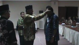 (proses penyerahan Hasil Rumusan Rakerda oleh Pansek PTA Ambon Basri, SH, MH dan pelepasan tanda peserta oleh KPTA Ambon Drs. H. Jufri Ghalib SH. MH)