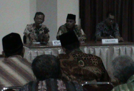 ( suasana Penutupan Rakerda dari kiri : Drs. Kamil Umar Esa, SH (Ketua Panitia), Drs. H. Jufri Ghalib SH. MH (KPTA Ambon) dan Nara Sumber Drs. Hambali Baramula, SH)