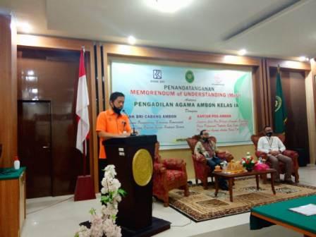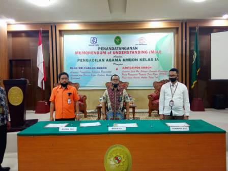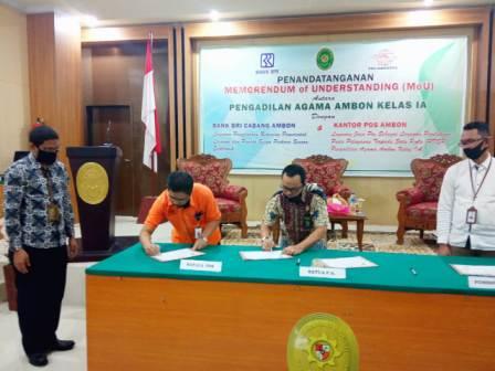 Sebagai upaya peningkatan pelayanan kepada masyarakat pencari keadilan dan memperkuat kerjasama, pada tanggal 24 Juli 2020 Pengadilan Agama Ambon Kelas I A melaksanakan penandatanganan Memorandum Of Understanding (MOU) dengan Bank Rakyat Indonesia dan Kantor Pos Cabang Ambon.