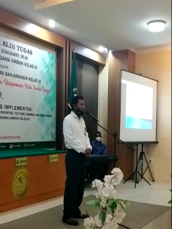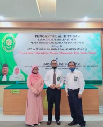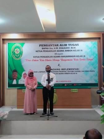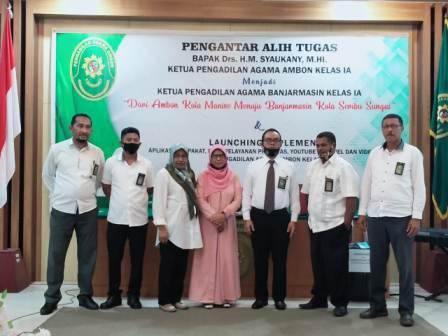 Pengantar Alih Tugas Ketua Pengadilan Agama Ambon Kelas IA menjadi Ketua Pengadilan Agama Banjarmasin Kelas IA serta Launching Implementasi Aplikasi e-SEPAKAT, Meja Pelayanan Prioritas, Youtube Channel dan Video Profil Pengadilan Agama Ambon.