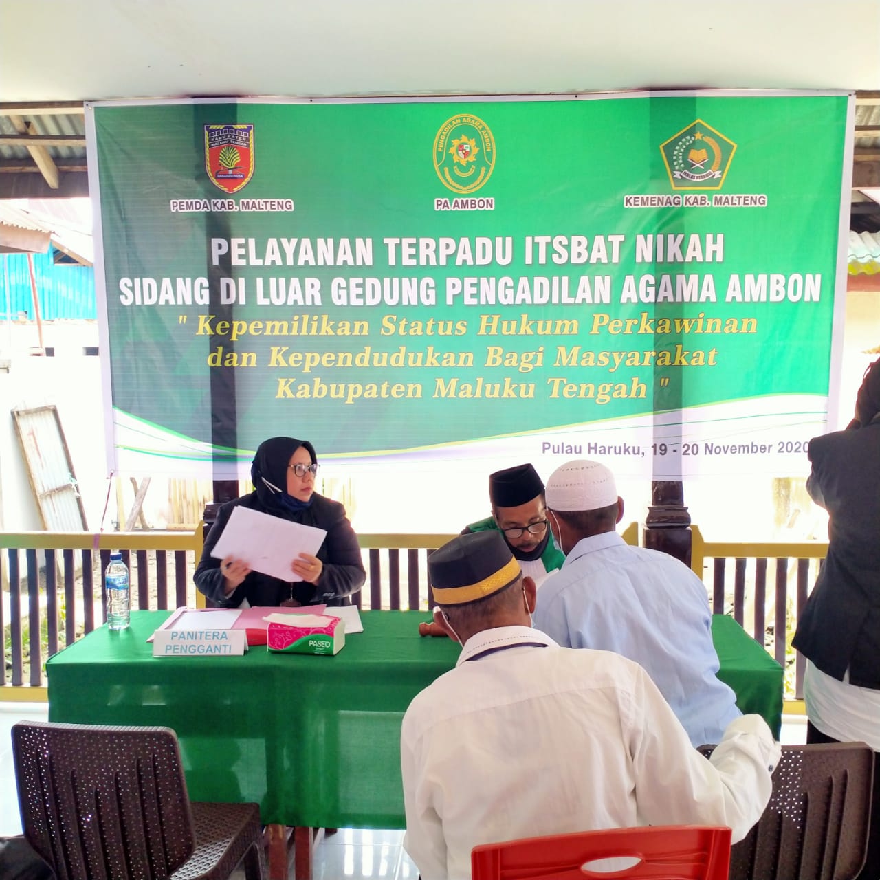 Jumat, 20 November 2020, Sidang Terpadu Itsbat Nikah sukses diselenggarakan oleh Pengadilan Agama Ambon yang bekerjasama dengan Pemerintah Daerah Kabupaten Maluku Tengah dan Kementerian Agama Kabupaten Maluku Tengah di Kecamatan Pulau Haruku.