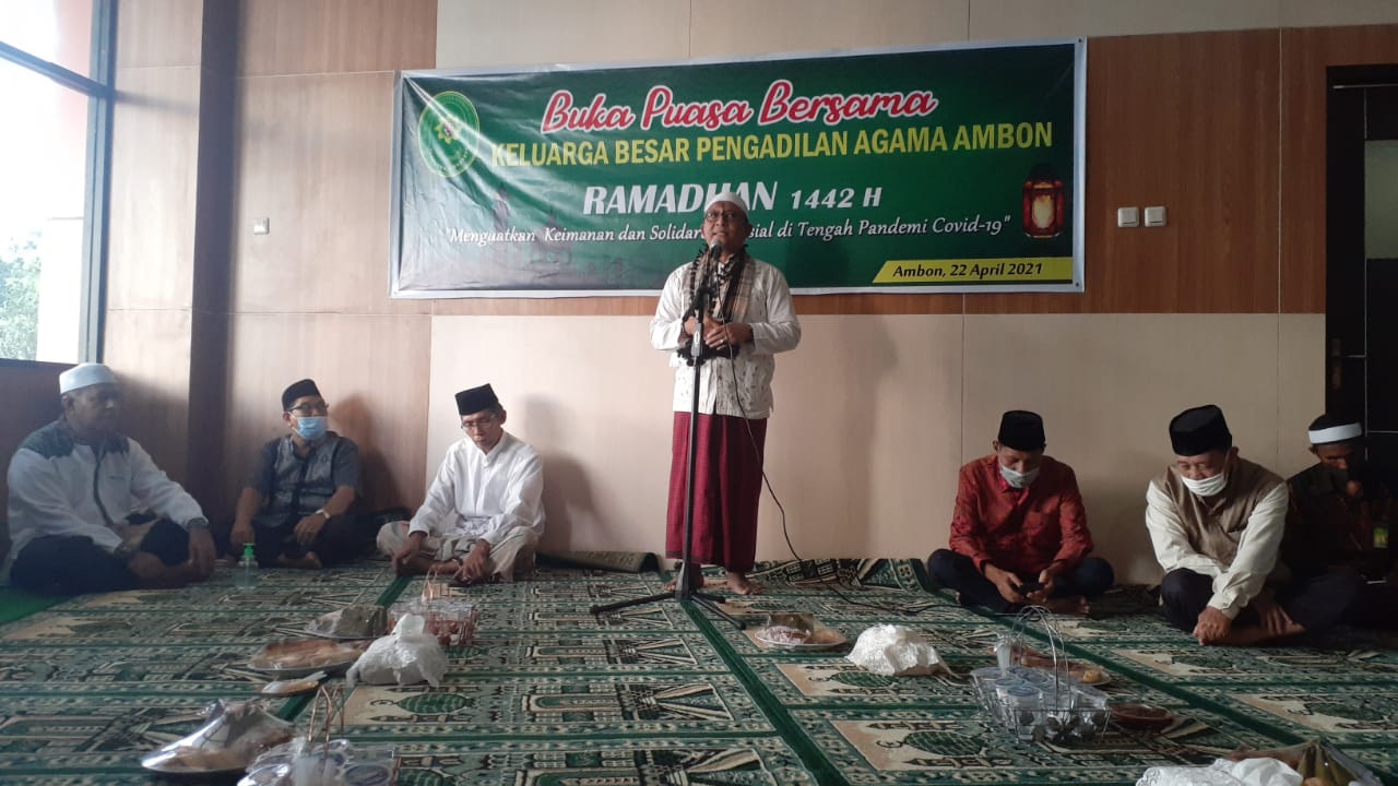 Ambon, 22 April 2021, bertepatan dengan tanggal 10 Ramadhan 1442 Pengadilan Agama Ambon mengadakan Acara Buka Puasa Bersama, dengan tema "Menguatkan Keimanan dan solidaritas social ditengah pandemi Covid – 19”, acara buka puasa bersama ini dihadiri oleh Pegawai Pengadilan Agama Ambon bersama keluarga, Ketua Pengadilan Tinggi Agama (PTA) Ambon, Hakim Tinggi PTA Ambon, Panitera PTA Ambon, dan juga Anak – anak Panti Asuhan Itaqullah Kota Ambon.