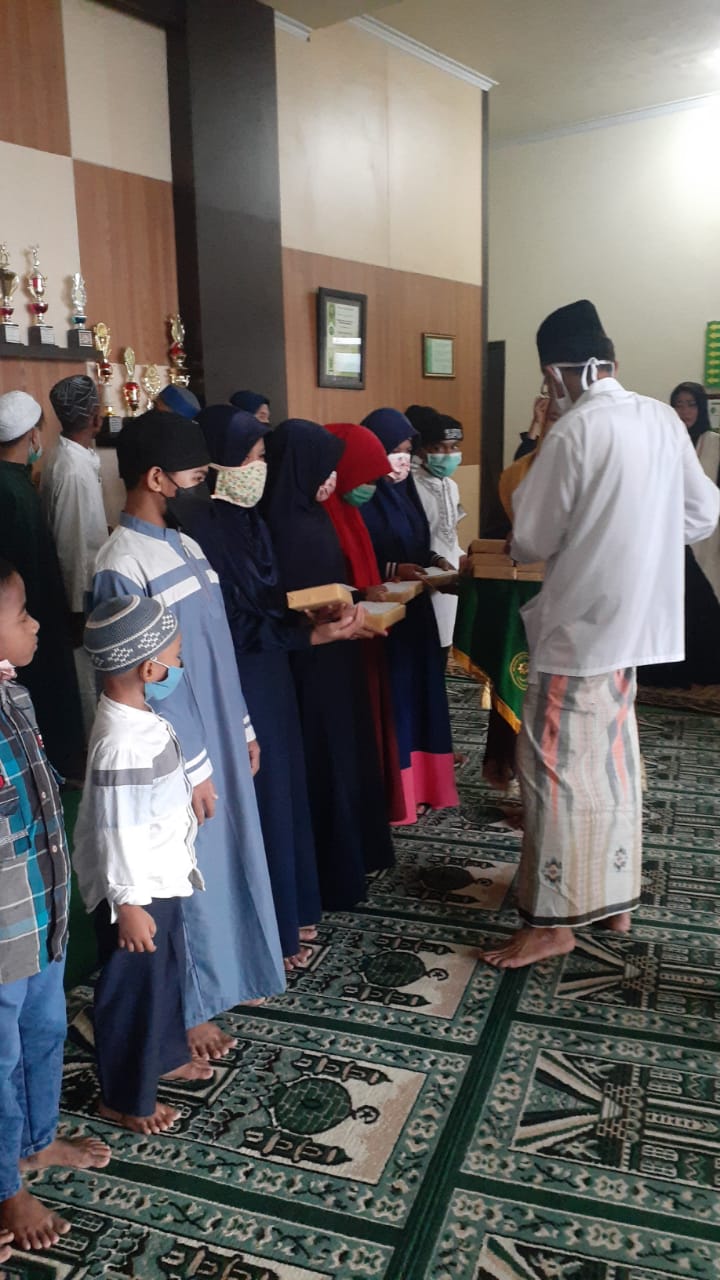 Selanjutnya pemberian santunan kepada Adik-adik Panti Asuhan Itaqullah sebanyak 15 orang, setelah pemberian santunan Bapak Drs. H. Tomi Asram, SH.,MH di persilahkan untuk menyampaikan Kultum. Beliau mengatakan mari kita selalu bersholawat kepada junjungan kita Nabi Besar Muhammad SAW, dan sesuai tema ini dan dalam pendemi covid – 19 ini semoga ibadah kita di terima oleh Allah SWT, dengan selalu memperkuat iman kita, solidaritas kita, dan mari kita mengevaluasi diri agar selalu dapat memperbaiki diri kita, agar kita mempunyai bekal nanti untuk kelak bertemu dengan sang pencipta. Semua ibadah yang kita lakukan adalah dapat memberikan motivasi internal.