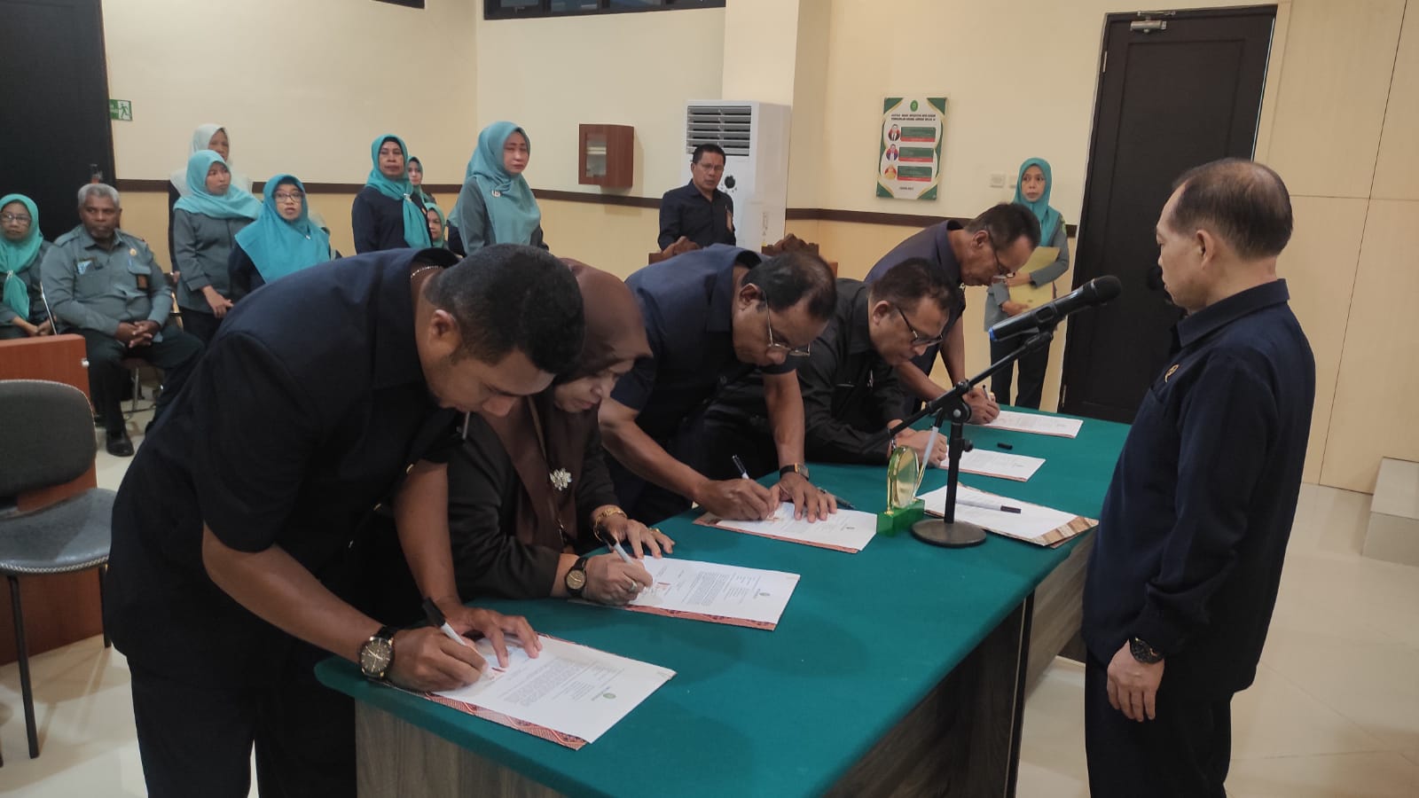 PENANDATANGANAN PAKTA INTEGRITAS PIMPINAN, PARA HAKIM, ASN DAN PPNP PA.AMBON