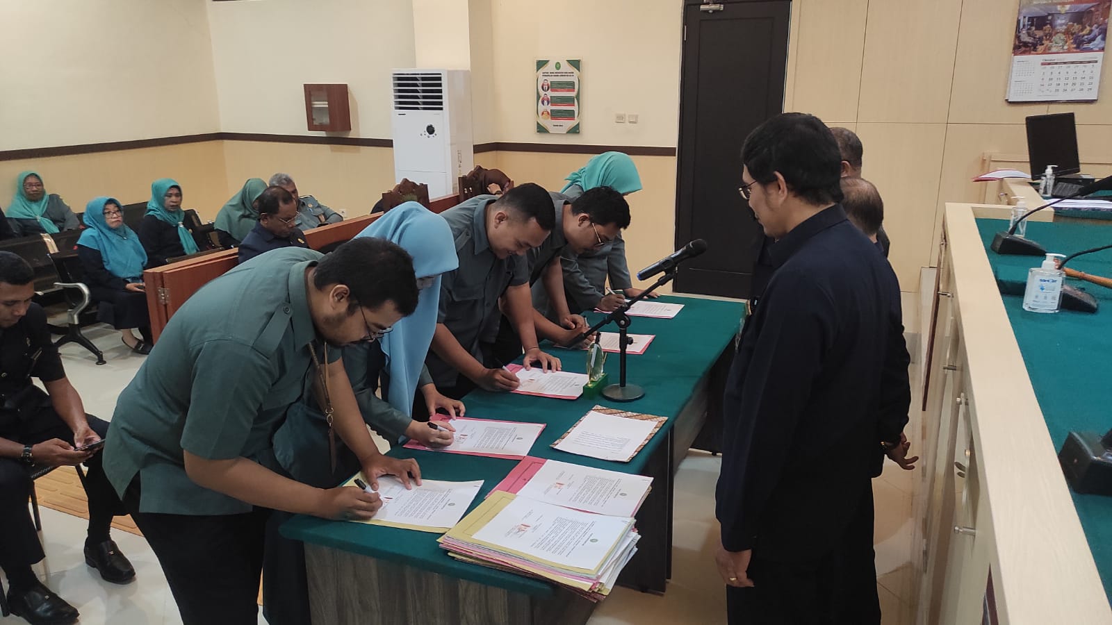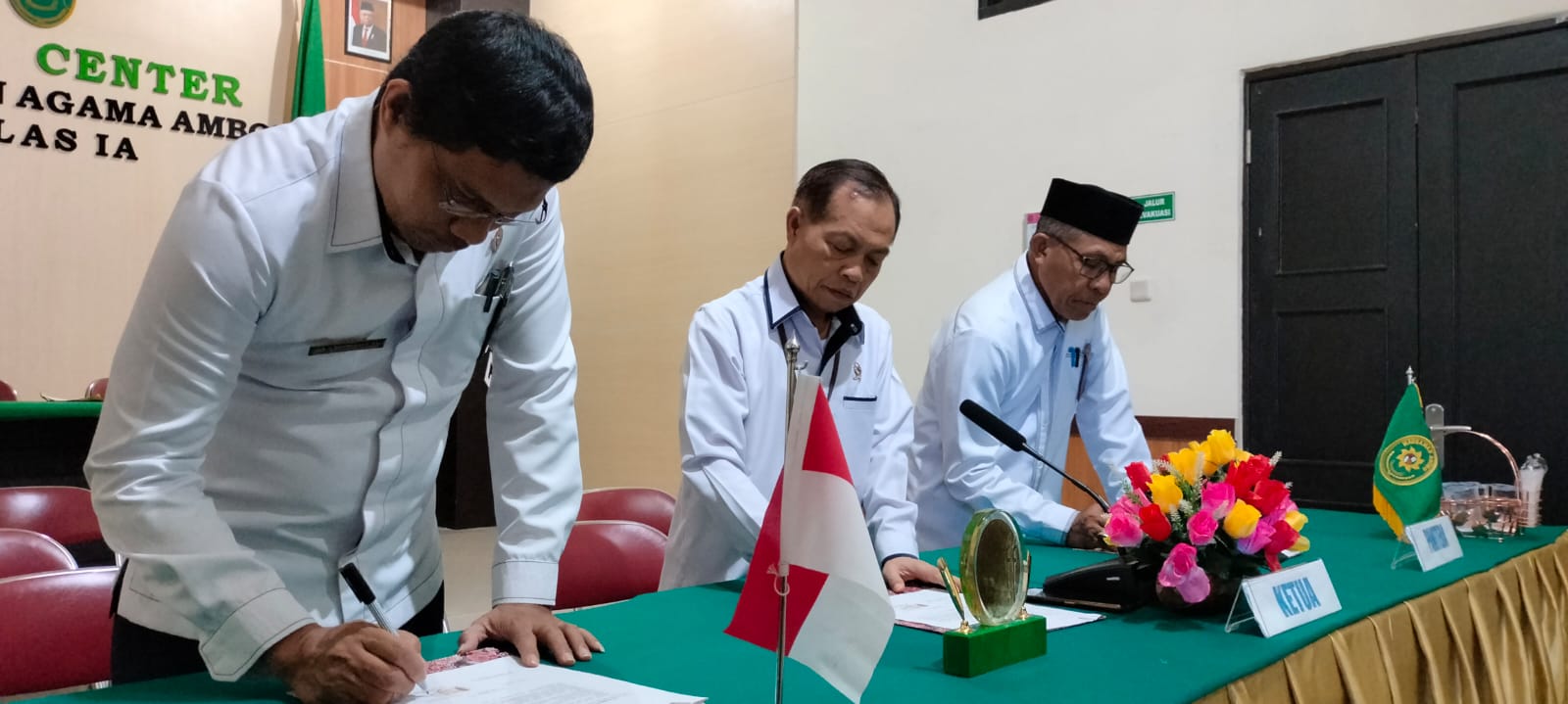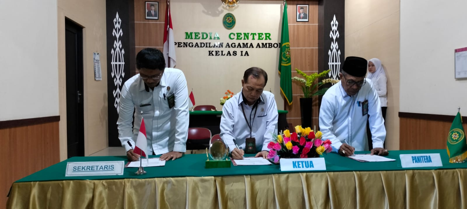 Selasa, 04 Oktober 2022, Bertempat di Ruang Sidang Utama Pengadilan Agama Ambon Kelas I.A., Segenap Aparatur Sipil Negara (ASN) Pengadilan Agama Ambon melakukan Pembacaan dan Penandatangan Pakta Integritas bersama. Tahapan ini dimulai dari Pembacaan Pakta Integritas Oleh Hakim kemudian disusul dengan Pembacaan Pakta Integritas oleh ASN dan PPNPN Pengadilan Agama Ambon. Acara kemudian dilanjutkan dengan Penandatangan Pakta Integritas yang dilakukan oleh Hakim, ASN dan PPNPN Pengadilan Agama Ambon Kelas I.A