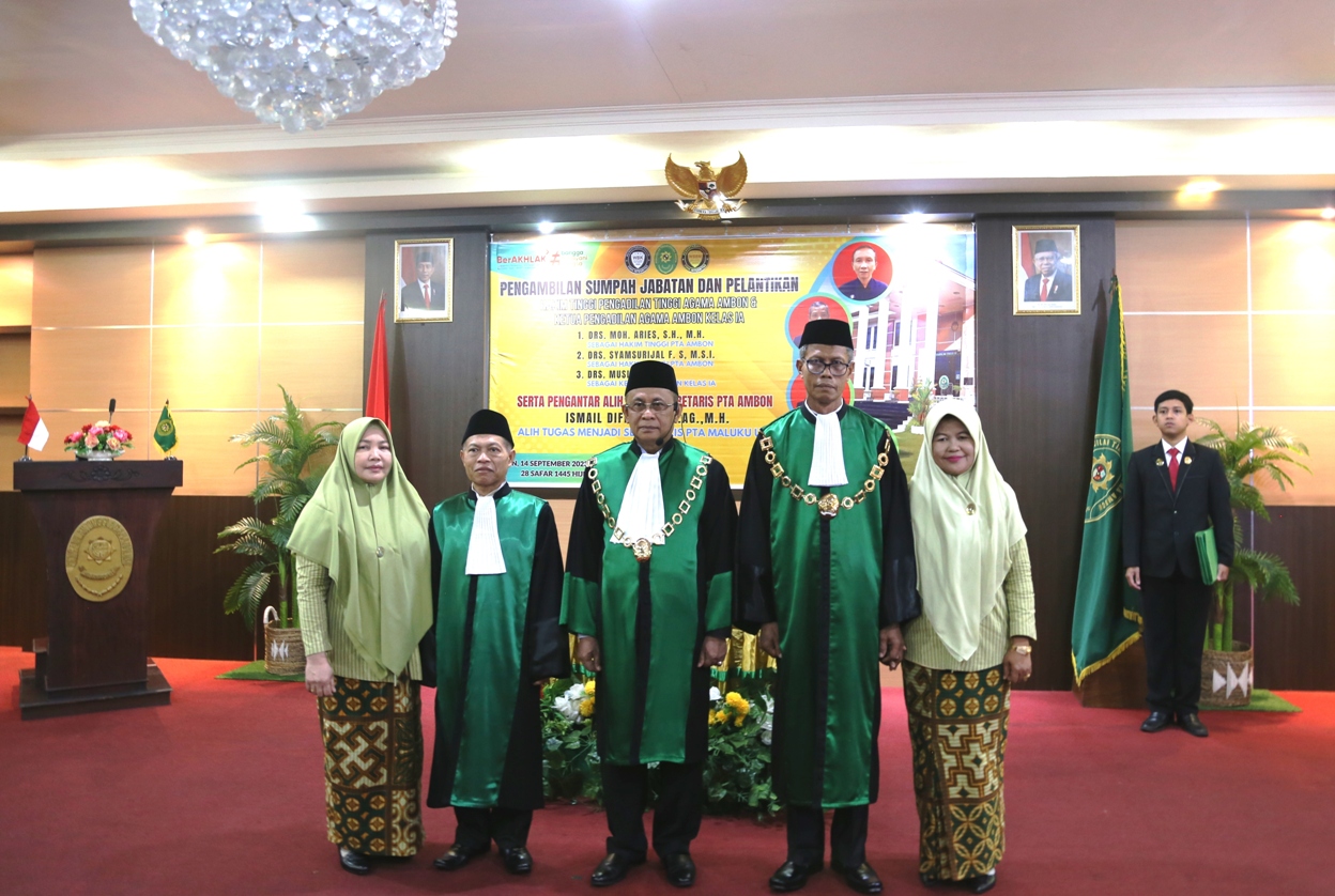 Ambon, Ketua Pengadilan Tinggi Agama Ambon, Dr. Drs. Khaeril R., M.H. melantik Ketua Pengadilan Agama Ambon Kelas IA, Drs. Muslim, M.H. pada hari Kamis, 14 September 2023 bertepatan dengan 28 Safar 1445 Hijriah. Pelantikan dan Pengambilan Sumpah Jabatan Ketua Pengadilan Agama Ambon dilaksanakan secara bersamaan dengan Pengambilan Sumpah Jabatan dan Pelantikan Hakim Tinggi Pengadilan Tinggi Agama Ambon yaitu Drs.Moh.Aries,S.H.,M.H. dan Drs.Syamsurijal F.S., M.S.I.