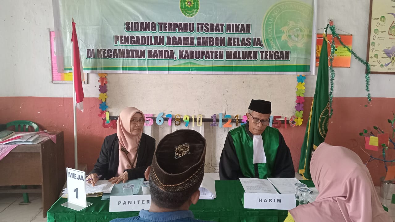 Pada hari Rabu tanggal 27 September 2023 Tim Pengadilan Agama Ambon Kelas IA melaksanakan Sidang Terpadu Itsbat Nikah di Pulau Banda, sidang dilaksanakan mulai pukul 09.00 WIT sampai dengan selesai di Gedung MIS Al Hilaal Naira Kecamatan Banda, Kabupaten Maluku Tengah, Provinsi Maluku. Tim yang diturunkan untuk melaksanakan Sidang Terpadu Itsbat Nikah terdiri dari 13 orang yaitu :