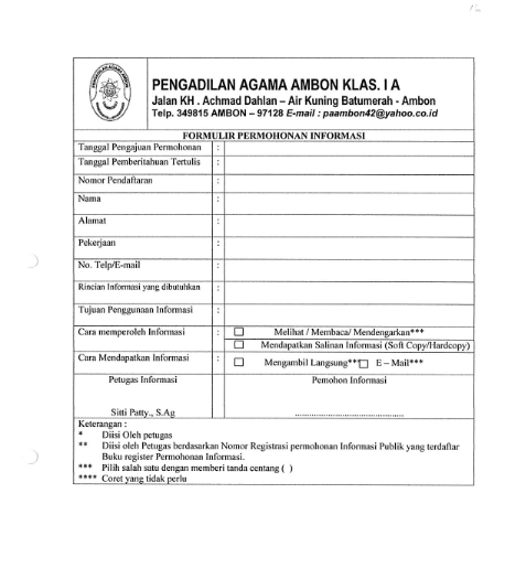 BIAYA UNTUK MEMPEROLEH SALINAN INFORMASI DI PENGADILAN AGAMA AMBON