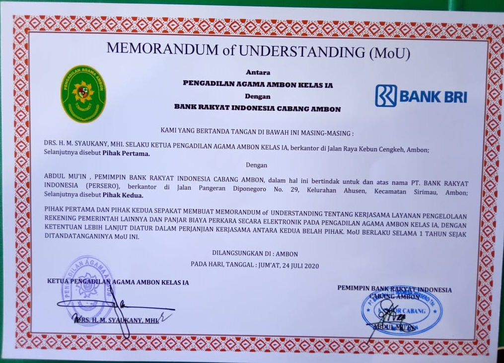 1. MoU PA Ambon dengan Kanwil Kemenag Provinsi Maluku